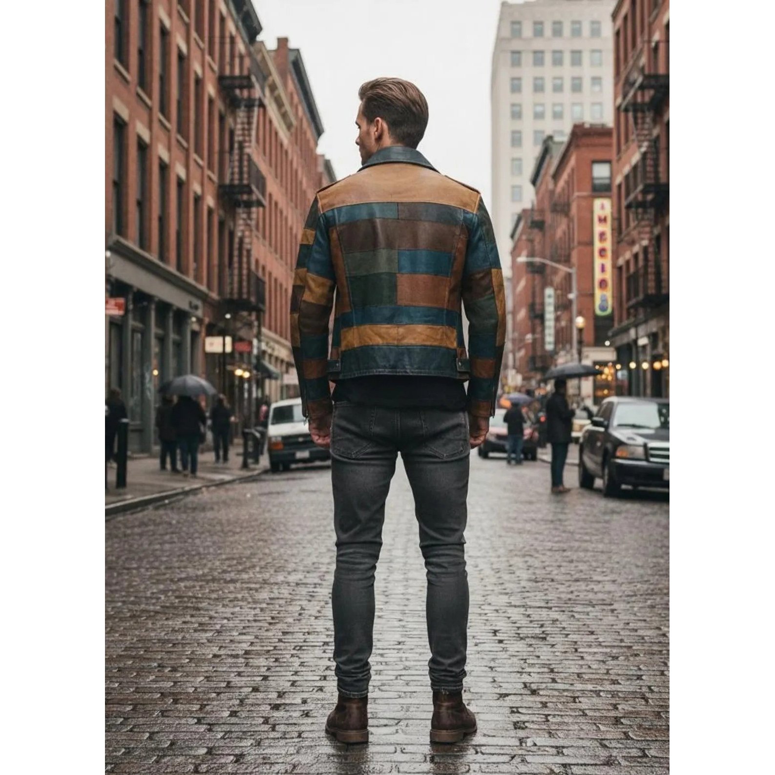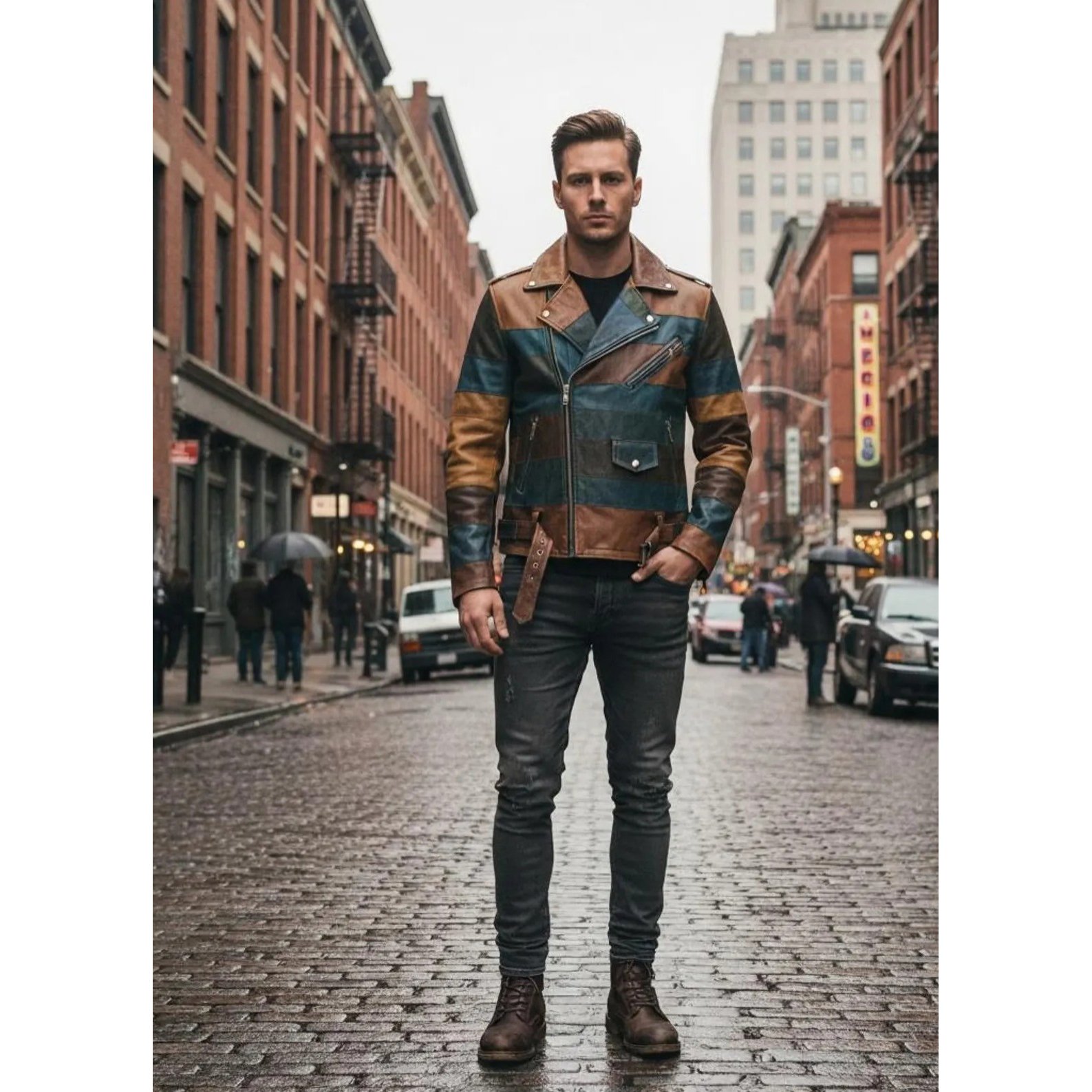 Men’s Handmade Multicolor Leather Patchwork Biker Jacket