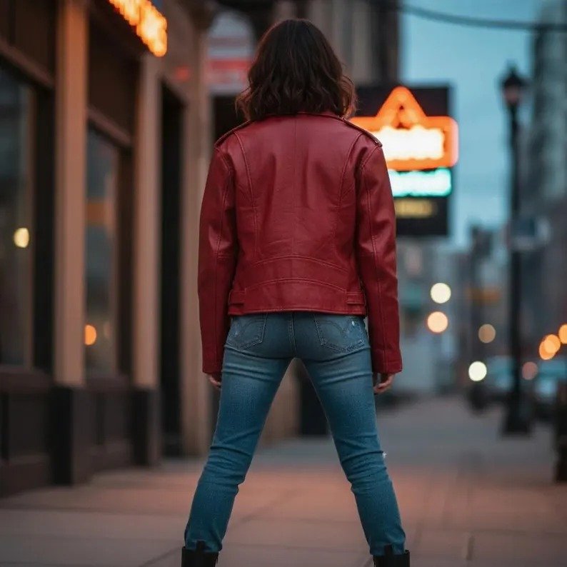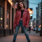 Women’s Red Lambskin Leather Biker Casual Fit Jacket