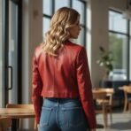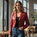 Be the first to review “Women’s Red Leather Crop Blazer – Stylish Fitted Jacket with Single Button Closure”